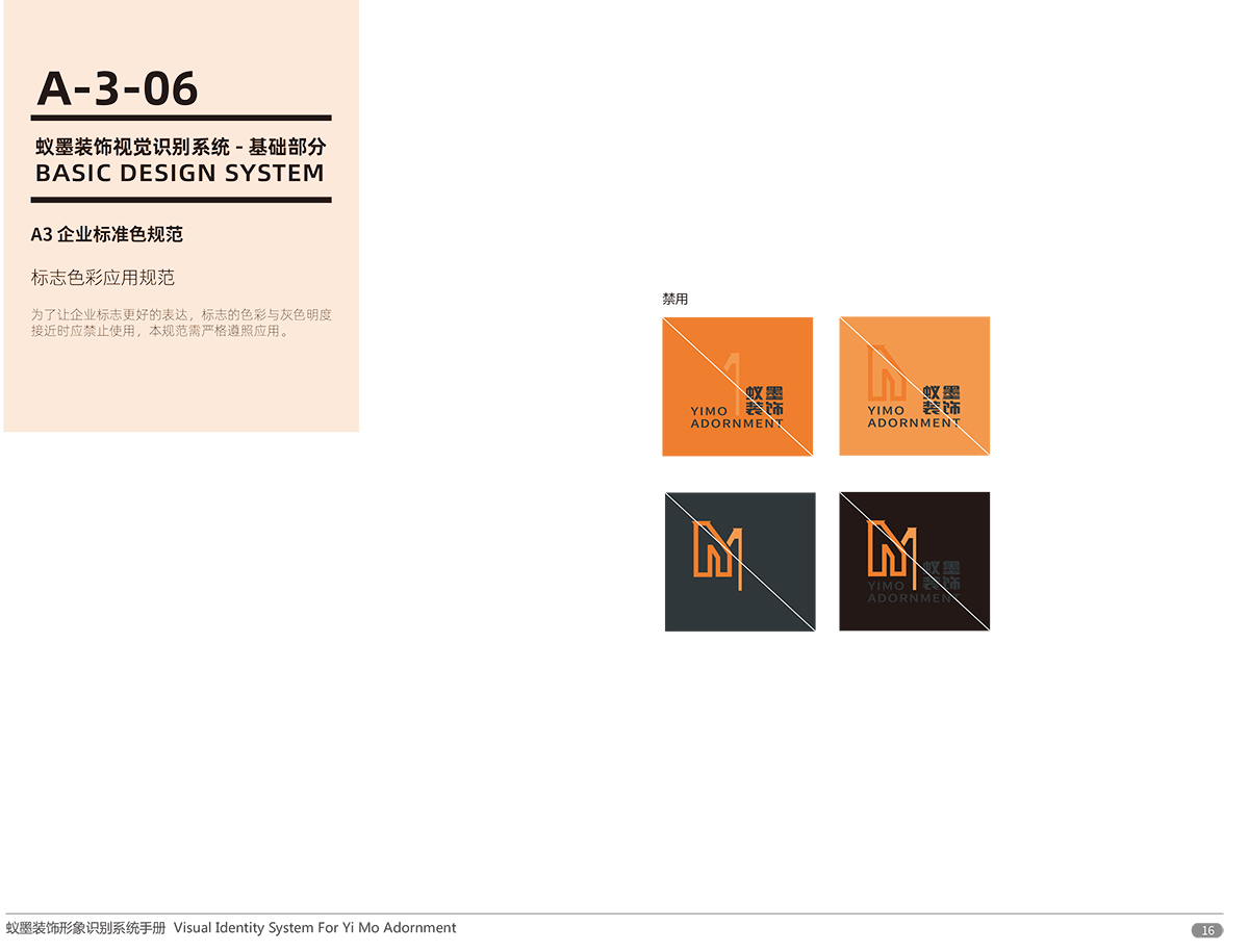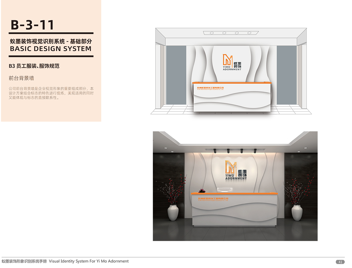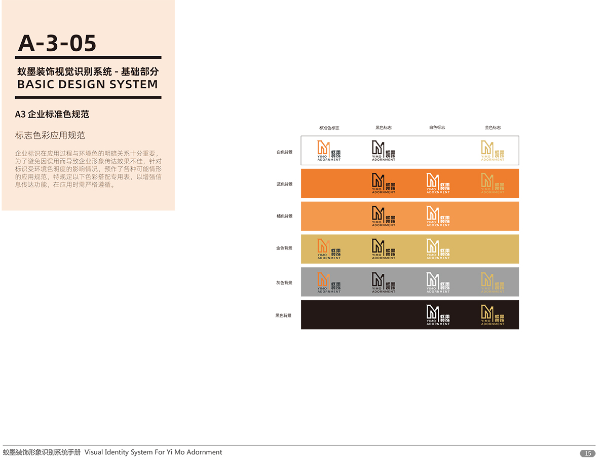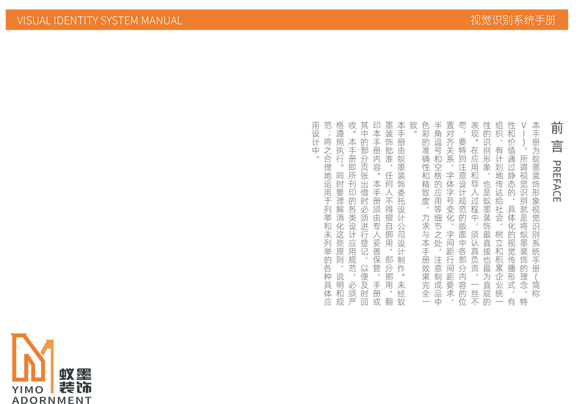 品牌介紹 :蘇州蟻墨裝飾工程有限公司經營范圍包括室內外裝飾裝潢工程、建筑工程、幕墻工程、園林綠化工程、樓宇智能化工程的設計與施工;管道、門窗、水電安裝;銷售:建筑材料、金屬材料、五金交電。LOGO設計,選用“YIMO”的首字母“Y,M”進行圖形創意,設計簡潔、配色以愛馬仕黃色與墨玉色搭配,偏平話設計講字母巧妙的組合在一起,通過線條的粗細突出層次感和空間感,傳達了企業的空間裝飾理念,易于傳播與記憶。