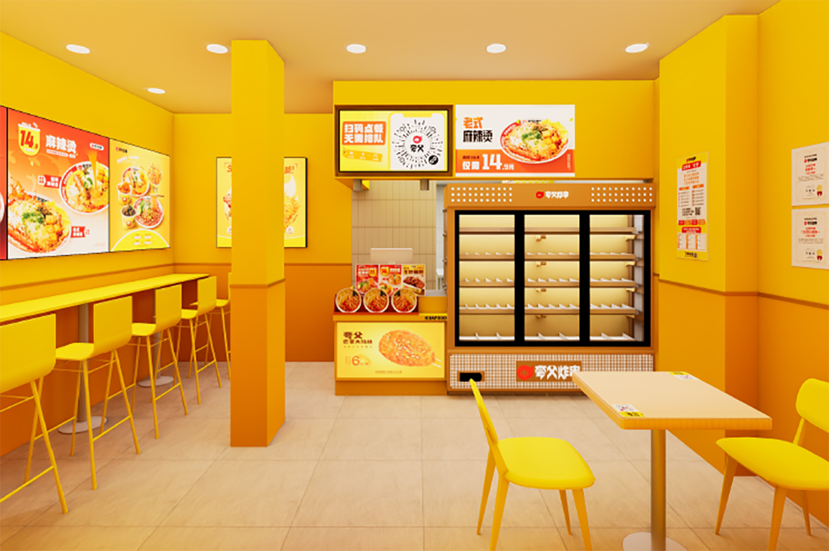 餐飲小吃連鎖店面廣告制作|夸父炸串|餐飲連鎖店面設計