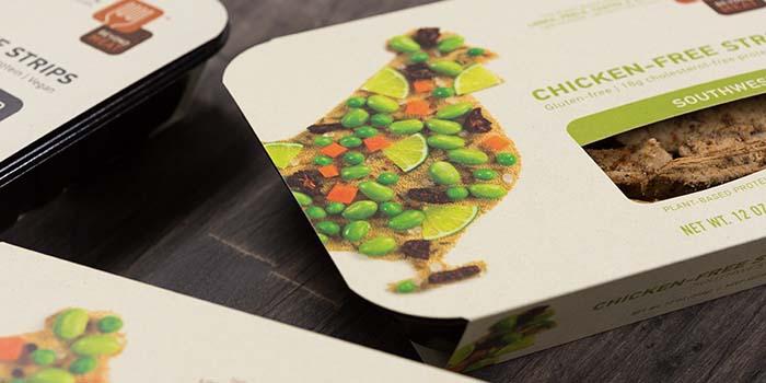 這個冷凍食品包裝設計形象許,除了展示凍肉的完美鮮亮的外觀之外,是完全可以取代動物蛋白的植物蛋白產品,這是該公司出現在貨架上的第一個產品。