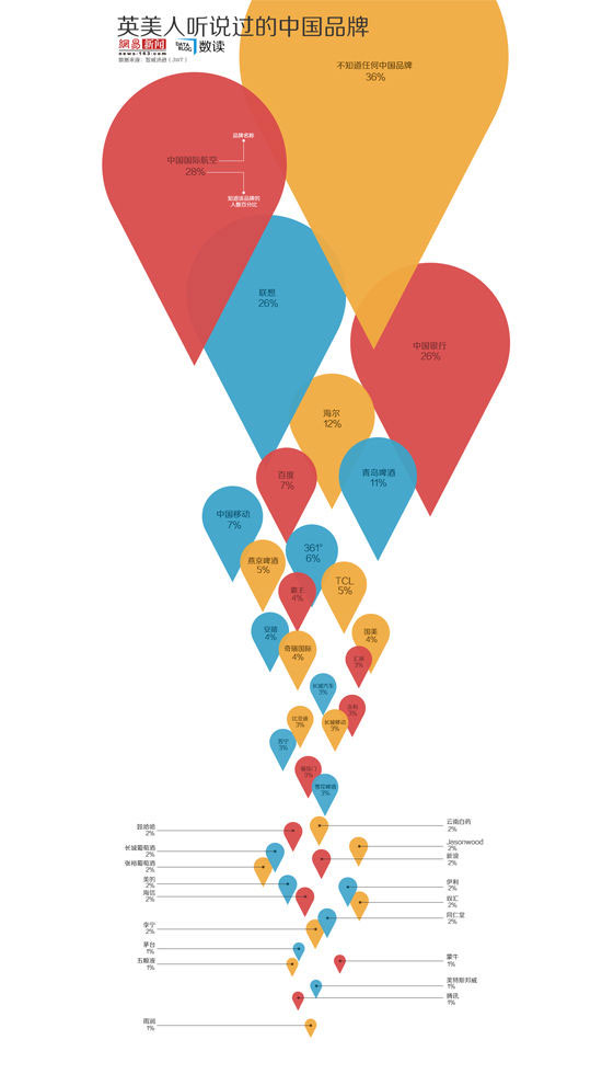 近日,智威湯遜(JWT)發布中國品牌知名度調查報告,結果顯示,高達36%的英國和美國消費者“從未聽說過任何中國品牌”,而他們真正聽說過的中國品牌也屈指可數。 在英美消費者群體中,知名度最高的三個中國品牌是中國國際航空、中國銀行和聯想,分別有28%、26%和26%的人聽說過以上三個品牌。值得強調的是,“國字號”的品牌占了兩強。海爾和青島啤酒的知名度為別是12%和11%,分列第四和第五位。排名第六至第十位的品牌的知名度均在7%以下,依次是中國移動、百度、361°、燕京啤酒和TCL。 由于國際消費者對“中國制造”的產品普遍持負面評價,他們把這些負面感知延伸到中國的自主品牌上。消費者一旦發現產品存在瑕疵或問題,就會很容易這種體驗歸結“中國制造”上,形成一桿子打翻一 船人的效應。除去這種“刻板印象”帶來的負面影響,中國自主品牌的內部因素也是它們無法在全球范圍內獲得較大知名度的主要原因。比如缺乏在國際市場上與大品牌競爭的經驗,甚至其本土市場被強勢的國際大品牌侵食。智威湯遜趨勢研究總監安.馬克 (Ann Mack)稱:“中國自主品牌要想榜上有名,就必須與世界級甚至更高級別的品牌競爭。”當然,歸根結底仍然是產品本身的問題。 事實上,一些中國企業在本行業已經獲得了巨大的成功,也贏得行業聲譽,然而大眾知名度并不高,譬如華為公司。美國《新聞周刊》曾把華為比喻成“無名的巨人”。2012年,華為已經超過愛立信,成為全球最大的電信設備制造商,但華為并不為歐美消費者所熟悉。從改革開放算起,中國制造的品牌回歸國際市場僅僅30年,相比之下,國際名企制造的品牌早已接受長時間的考驗,已在消費者心目中形成良好的品牌形象。中國品牌要以正面的形象沖出亞洲走向世界還有很長一段路要走。 此次調查主要面向英國和美國的18歲以上消費者,調查樣本數共1000人以上。