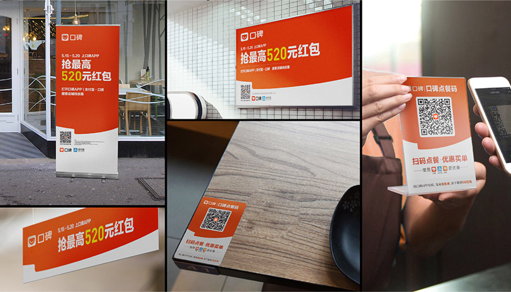 另外,在此次升級(jí)中,設(shè)計(jì)師還為口碑重新設(shè)計(jì)了輔助性的圖形元素,以幫助口碑的各類物料提升被感知、識(shí)別、記憶的可能。