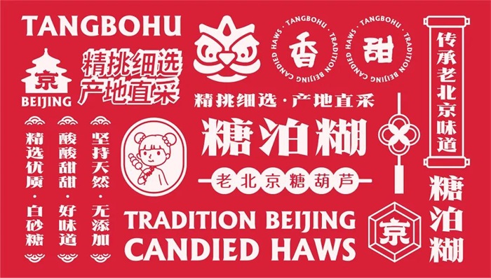接下來分享的是一個老北京糖葫蘆品牌設(shè)計,以老北京的國潮基調(diào)進(jìn)行設(shè)計,塑造了一個不一樣的糖葫蘆品牌。
