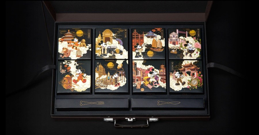 在“Mickey漫游民國”的主題下,RLON用畫筆,將北京的皇城味、上海灘紙醉金迷的都市味兒、廣府美食獨有的思鄉味兒和昆明云貴高原物產的風味,一樣樣畫下來,美輪美奐且“最有范”的迪士尼民國范月餅包裝設計完美呈現。