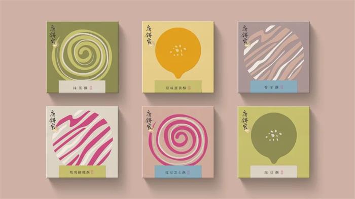 于2002年創立的唐餅家中式糕點品牌,這次的包裝形象升級以簡潔的設計手法和國潮風格,結合唐朝代表性的宮廷或官家元素,演繹了全新的唐朝韻味。首先包裝以唐朝畫作重現精致唐風,帝后組合作為品牌核心形象,結合唐朝文化藝術中的三彩馬、三彩駱駝及唐朝經典建筑設計。另外通過扁平化色彩,抽象線條的畫面勾勒,巧妙展示了產品特有的外觀形象。整體波普化的呈現形式,契合品牌調性的同時,系列的視覺效果增添了幾分美感。而另一個版本的獨立包裝,莫蘭迪色調背景下以抽象化呈現了食品本身的外觀,激發消費者的味覺聯想。