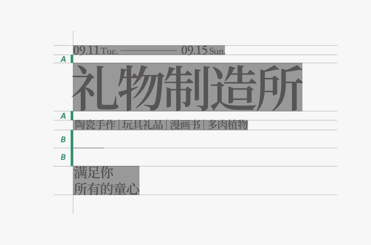 那么需要注意的第二個部分是,文字的長度一般來說,呈現“短長短”的排布節奏,在視覺上是較為舒服的。