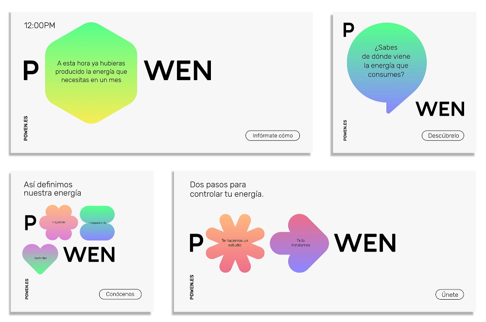 POWEN是一家西班牙的太陽能能源公司,成立于2017年。專注于為人們的家庭和中小型公司的營業場所安裝太陽能電池板。作為可再生能源公司的一部分,POWEN也致力于太陽能信息教育基地,并推動該國的可再生能源發展。極地視覺形象設計